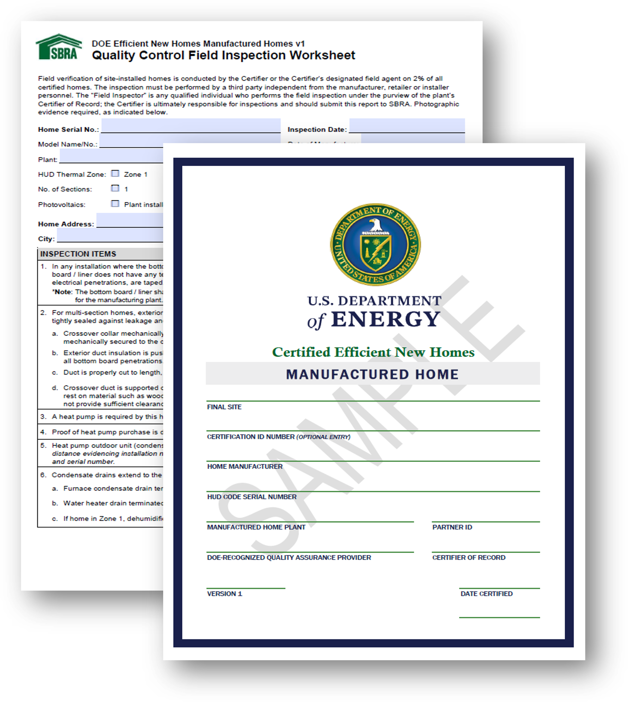 Only manufactured homes as defined by 24 CFR 3280, commonly referred to as the HUD Code, are eligible to be certified through the DOE ENH Manufactured Homes Program. A DOE ENH Manufactured Home is a home that meets all criteria in the DOE ENH Manufactured Homes National Program Requirements Version 1 and is built in a plant that has been certified by an independent third party under the quality assurance oversight of a DOE-authorized Quality Assurance Provider. SBRA is a national Quality Assurance Provider for DOE ENH Manufactured Homes.